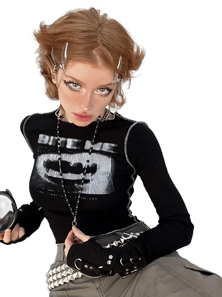 'Bite Me' Cropped Long Sleeve Tee