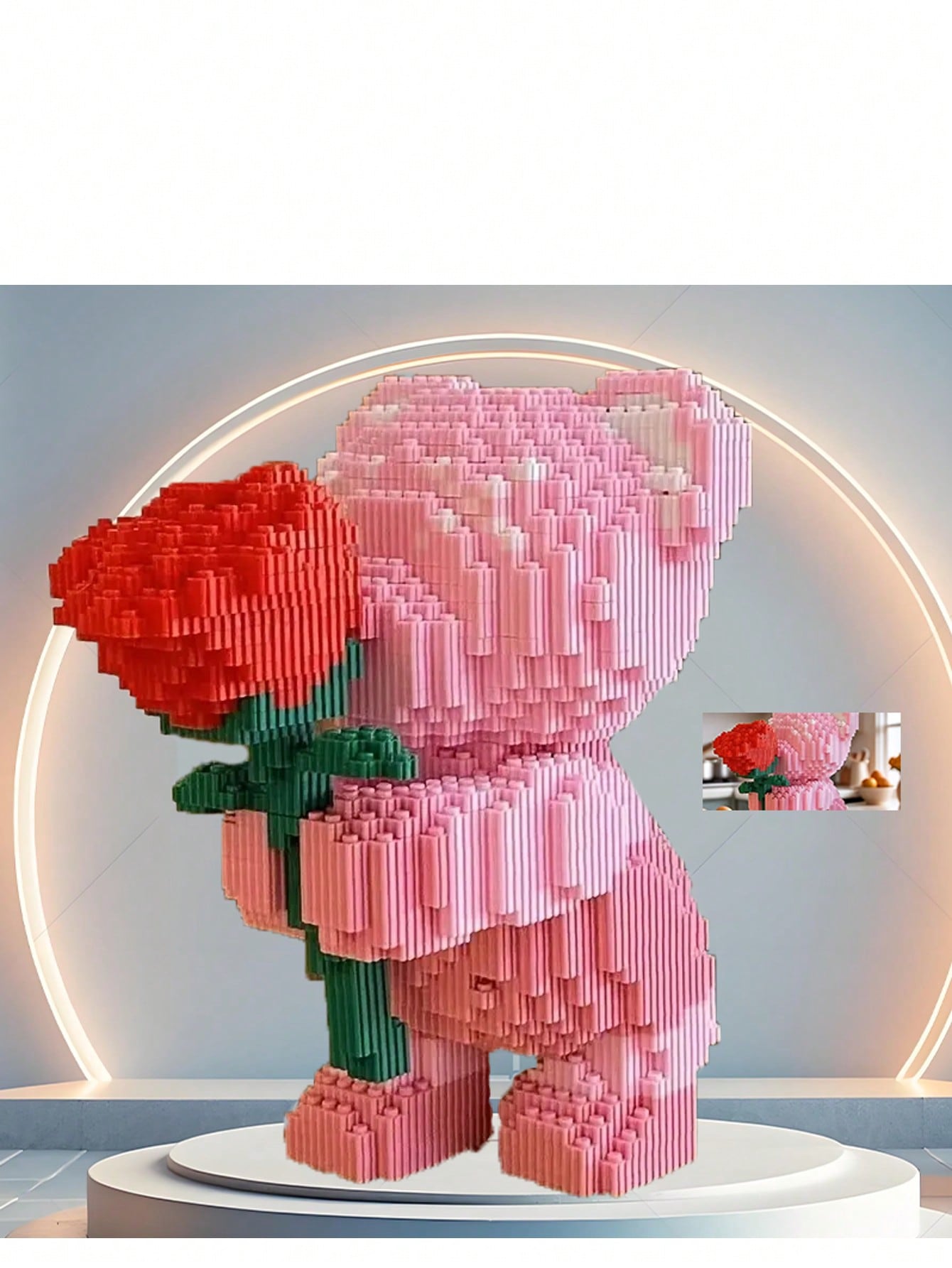 3800 pièces Bloc de construction Ours romantique tenant une rose. Convient pour les cadeaux et est un excellent choix pour les couples et les parents. Le niveau d'assemblage est élevé. C'est un cadeau parfait pour Noël/Halloween/la rentrée scolaire