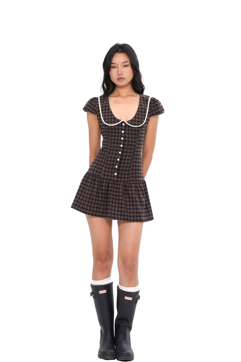 CINCH-WAIST GINGHAM MINI DRESS