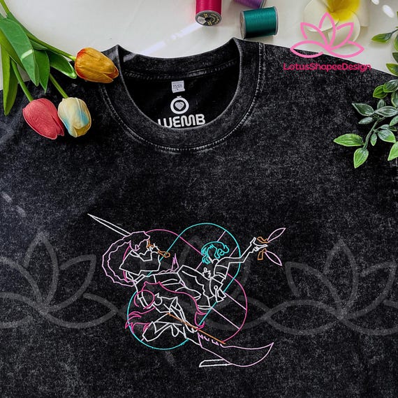Embroidery KPOP Band Huntrix Washed TShirt, Demon Hunter Line Art Tee, Huntrix Fan Shirt, Saja Girls Mira Rumi Zoey, Gift for Huntrix Fan