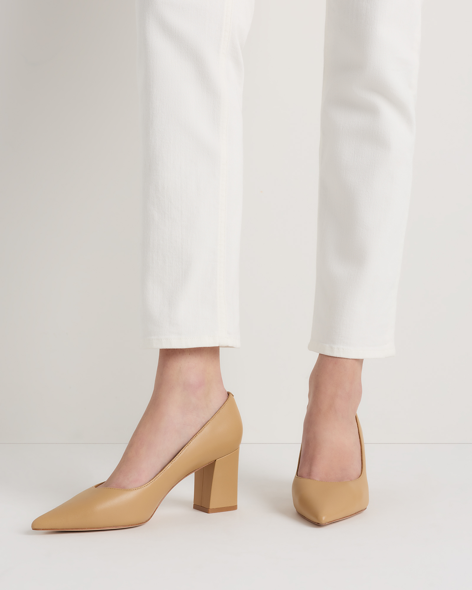 Italian Leather 65mm Block Heel Pump in Cashew