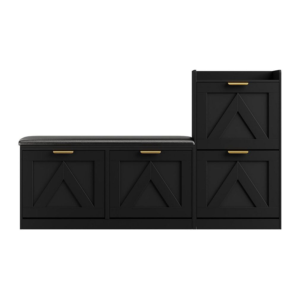 Shoe Cabinet with Bench, 4 Flip Drawers, Shoe Storage Cabinet with Bench and Cushion for Foyer