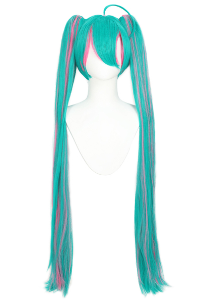 Vocal x Muse Dash Cosplay Perruque Longue Ligne Droite Rose Vert Double Queue de Cheval Perruque